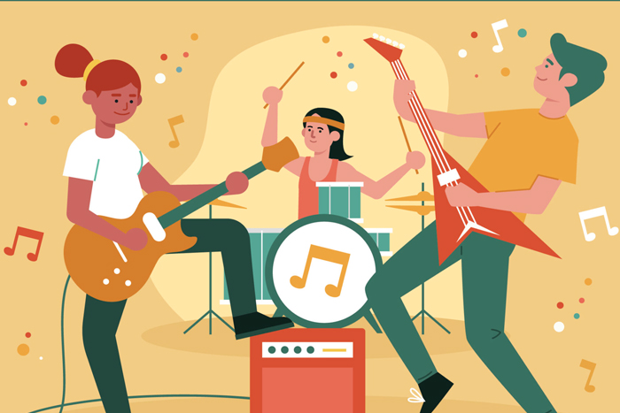 Les élèves des cours de musique individuels se retrouvent pour jouer ensemble des grands standards. Ils sont accompagnés pour ce travail par Cyrille Vannier et leur professeur.